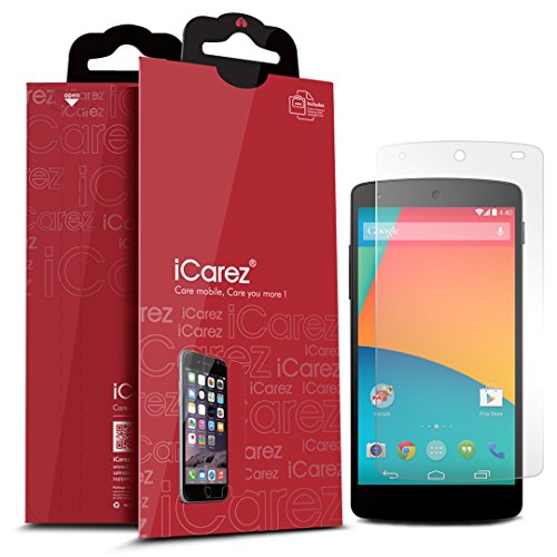 The iCarez LG Google Nexus 5 [HD Anti-Glare] Premium Screen Protector [ Unique Hinge Install Method With Kits ] 3-Pack with Lifetime Replacement Warranty it you must have for google nexus 5.