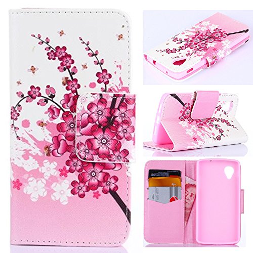 The Nexus 5 Case,IVY [Kickstand Flip Case] Google Nexus 5 Wallet Case [Magnetic Money Card Slot][Plum Blossom] Premium Soft TPU Synthetic Leather Flip Cover - Verizon, AT&T, Sprint, T-Mobile, International, and Unlocked - Wallet Case for LG Google Nexus 5 it you must have for google nexus 5.