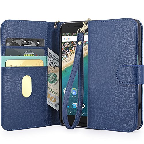 The Nexus 5X Case, MP-Mall [Kickstand Function] [Card Slot] Premium PU Leather Folio Flip Wallet Case Cover With Wrist Strap For LG Google Nexus 5X (2015) (Blue) it you must have for google nexus phone.