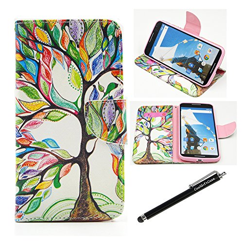 The Nexus 6 Case, Google Nexus 6 Wallet Case - Tree of Life Pattern Premium PU Leather Wallet Case Stand Cover with Card Slots Cash Compartment for Google (Moto) Motorola Nexus 6 + CoolGiftCase Stylus it you must have for google nexus phone.